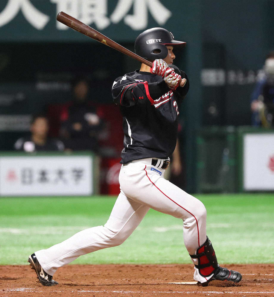 2日の西武戦(メットライフドーム)以来4試合ぶりのスタメン出場。2打席連続三振で迎えた3回2死満塁、左腕ミランダの128キロチェンジアップを右前打。3月29日の開幕戦(対楽天、ZOZOマリン)以来の安打は2点適時打となり、プロ17打席目で初打点がついた。