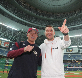 J1神戸ポドルスキ、楽天ベンチ激励「野球は刺激的、興味深い」