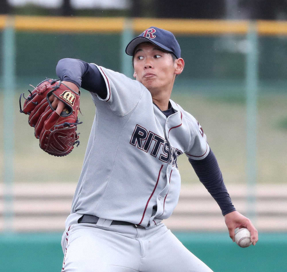 スタンドで視察した阪神・熊野スカウトは「もう少し、低めの変化球を意識させることができれば、威力ある高めの直球ももっと生きてくる。今日の投球が続けば、注目度も上がってくる」と評価した。立命大は17年ドラフトで東(DeNA)、18年の辰己(楽天)と2年連続でドラフト1位を輩出。周囲の想像を超える成長曲線を描けば“3年連続”も夢じゃない。