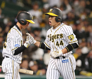 <神・D>8回、サイクル安打を達成した梅野(右)を祝福するナイン(撮影・坂田 高浩) Photo by スポニチ 骨折しているのに…梅野「めちゃくちゃうれしい」サイクル安打 阪神が5点… ギャラリーで見る この記事のフォト 2019年04月09日の画像一覧 もっと見る 2019年04月09日の画像をもっと見る