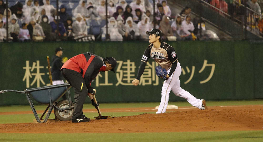 <ソ・日>10回開始前、雨脚が強まりシートがかけられるグラウンドをを見つめる日本ハムナイン(撮影・岡田 丈靖) Photo by スポニチ ソフトバンク―日本ハム、9回終了後降雨コールドで引き分け ギャラリーで見る この記事のフォト 2019年04月09日の画像一覧 もっと見る 2019年04月09日の画像をもっと見る