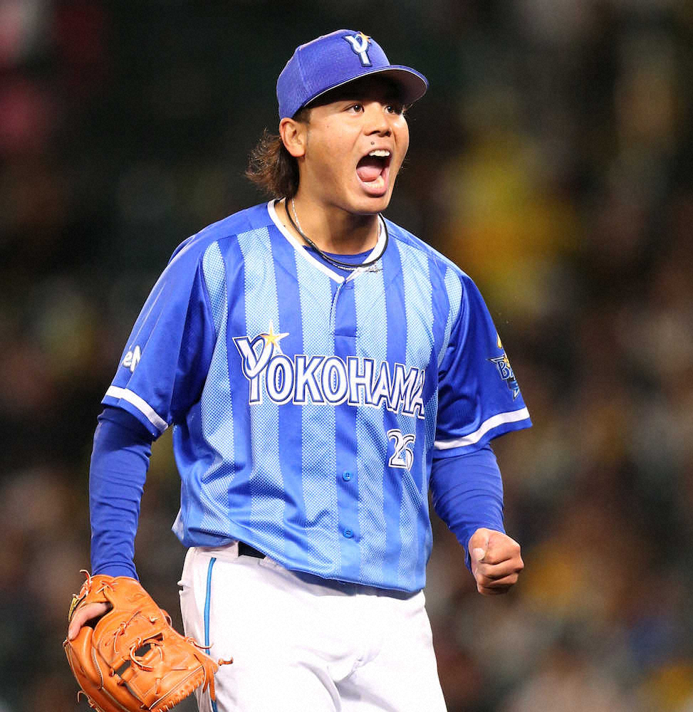 気温10度前後で雨も降りだす悪条件だったが、敵地・甲子園も苦にしない。父・顕人さんの影響で虎党となったが、DeNAからの指名後には「阪神に勝って(父に)恩返しがしたい。敵地(甲子園)で阪神ファンをブーブー言わせたい」と誓った。阪神戦は昨年から18イニング連続無失点で、甲子園での阪神戦は入団以来3勝1ホールドの負けなしだ。球団最多の通算46勝を誇る三浦投手コーチまでは遠いが「新虎キラー」の可能性を秘める。