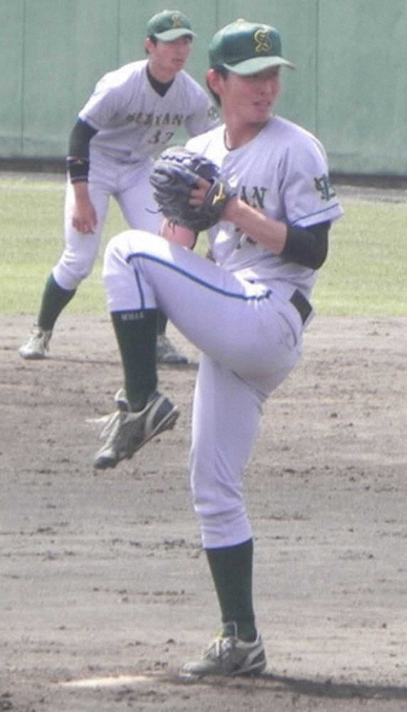 福岡・八幡南では内野手だったが、大学で投手に転向し、カットボールやフォークを覚えて飛躍。直球と変化球のコンビネーションで、チームが3位だった昨春リーグ戦では6勝をマークした。昨秋は6戦全勝で2季連続最多勝を獲得。福岡大との優勝決定戦では3失点完投し、秋58年ぶりの優勝の立役者になった。「去年1年間で成績の面では自信がついた」と振り返る。