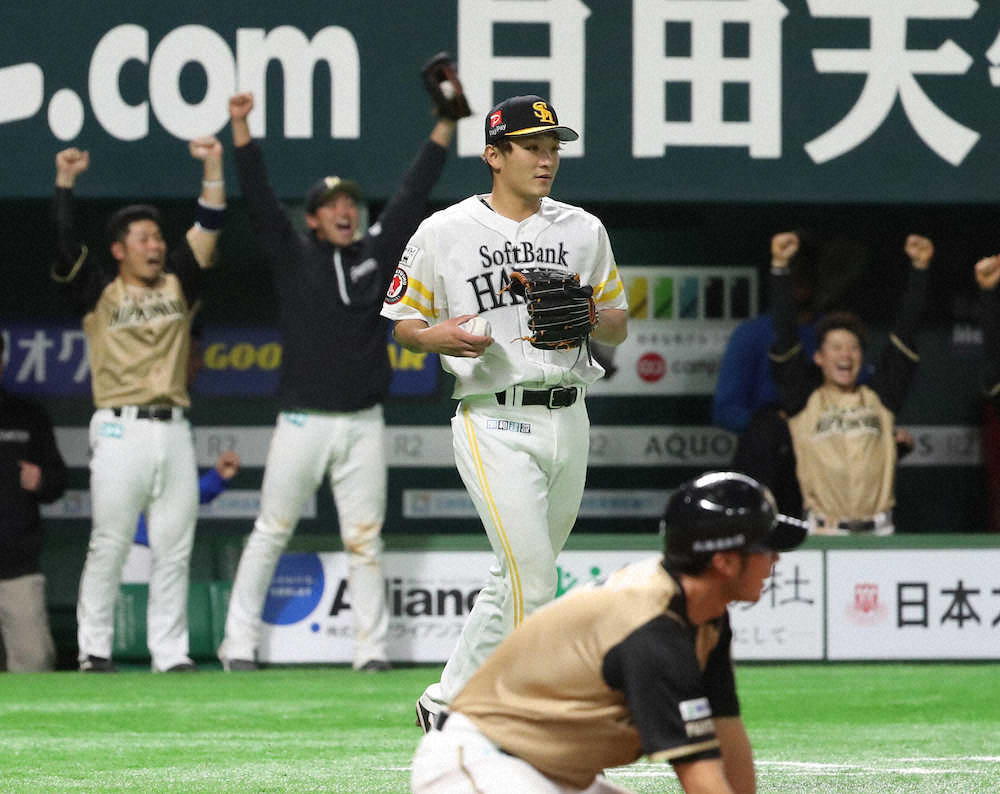 ソフトバンクは2日連続の延長戦。総力戦を落とし、開幕から守ってきた首位の座から陥落した。同点の延長11回2死一塁から登板した6番手の松田遼が踏ん張れない。四球を与え、王柏融に適時打を許した。直前の無死一、三塁では右翼手の上林が飛球を捕って、素早く本塁へ送球。三塁からタッチアップした俊足の西川をアウトにする「レーザービーム」も生かせなかった。