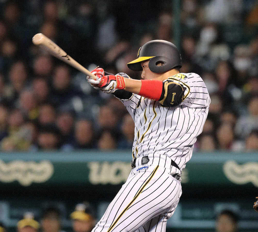 0―2で迎えた3回2死、DeNAの先発・大貫の5球目を振り抜くと、打球は左中間最深部に突き刺さった。初回1死二、三塁で三塁ゴロに倒れた悔しさを晴らすかのようにフルスイング。前夜完封負けした猛虎に12イニングぶりの得点をもたらし、肌寒い甲子園を熱くさせた。