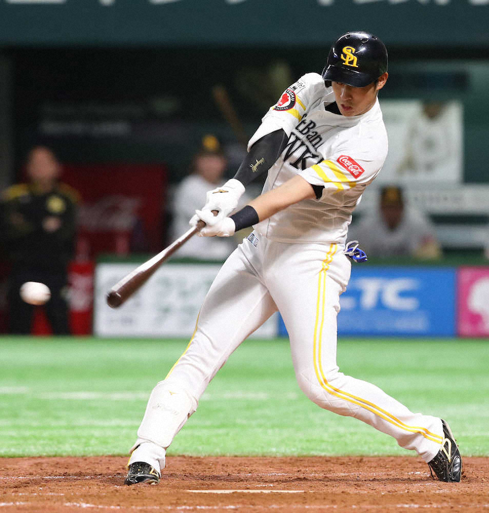 ソフトバンクが上林の2点タイムリーで先制した。0―0の4回2死満塁、1ストライクからの2球目、日本ハム・加藤のフォークを右前にはじき返した。二塁走者・デスパイネも激走。捕手のタッチをかいくぐっての生還劇に球場が沸いた。