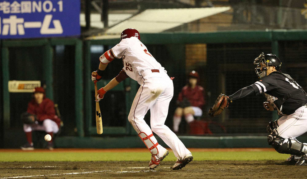 楽天は2回、1死二塁からブラッシュの左前適時打で先制。4回には無死満塁で足立の左犠飛打で加点した。その後追いつかれた8回1死一、三塁で甲斐のパスボールの間に勝ち越し。直後に田中がスクイズを決めて、貴重な追加点を入れた。