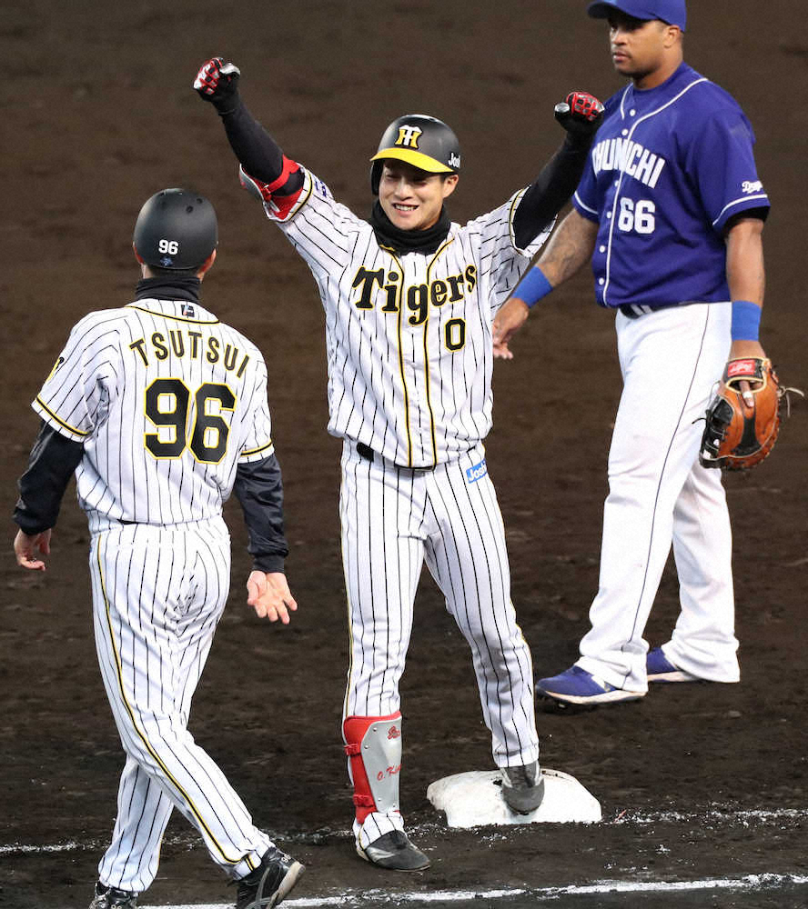 負けじと近本も意地を見せた。敗色濃厚の9回には一塁方向に力のないゴロが転がったが、自慢の俊足を生かして内野安打とした。6回に左前打し7回2死一、三塁での中前適時打と合わせプロ入り初の3安打。11日に代打でプロ初本塁打を放ち、5試合ぶりにつかんだ先発出場でも起用に応えた。