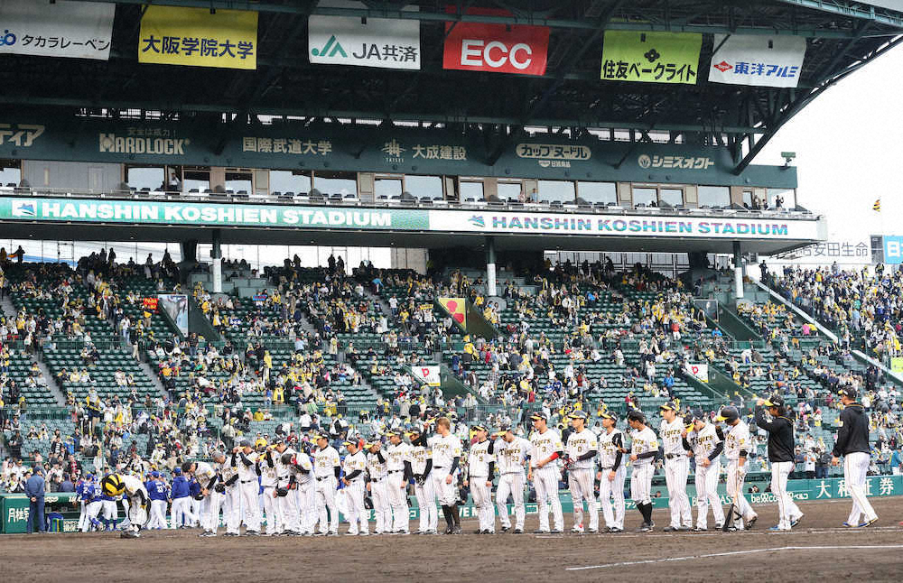 4万5699人の観衆が詰めかけた一戦。6回、見逃し三振に倒れた4番・大山には心ないヤジも飛んだ。中日に2本目の満塁弾が飛び出した8回直後に席を立つ観客も目立った。敗戦でも今季から導入する試合後の整列と一礼。スタンドからは温かい拍手とヤジの両方が乱れ飛んだ。