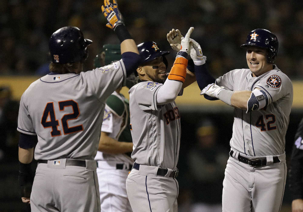 アストロズは初回にジョージ・スプリンガー(29)が先頭打者アーチ(5号)を放って先制。2回には7番のジョシュ・レディック(32)が古巣相手に今季1号となる2ランを放って3―0とした。