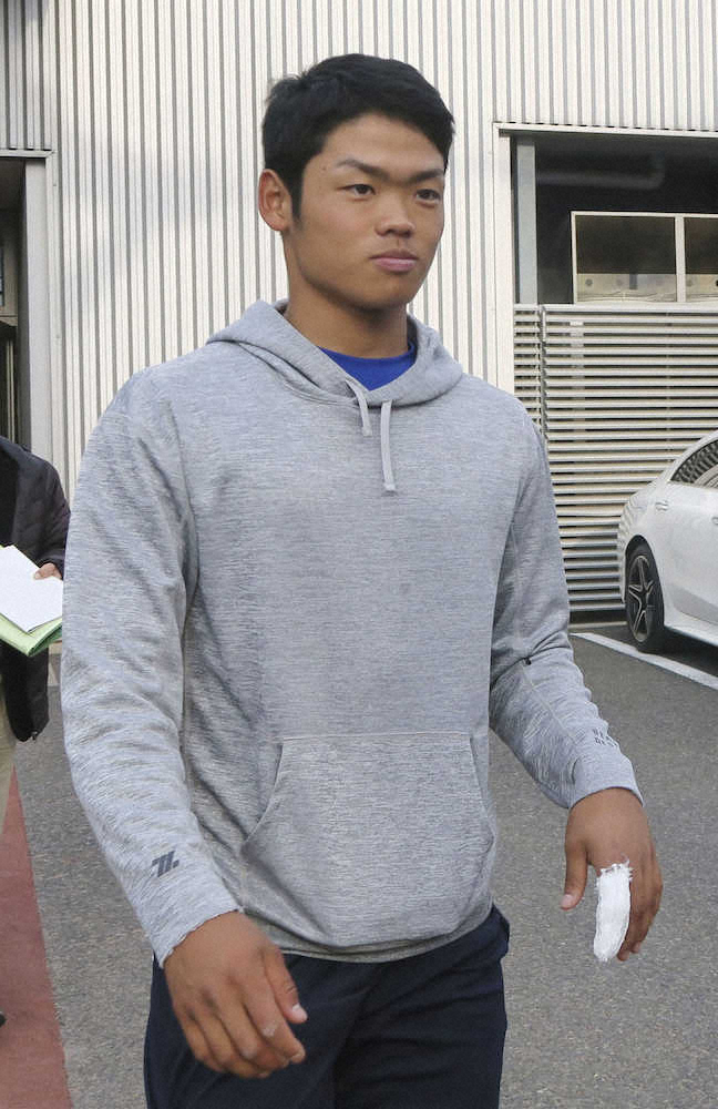 左手人さし指を負傷した中日・根尾