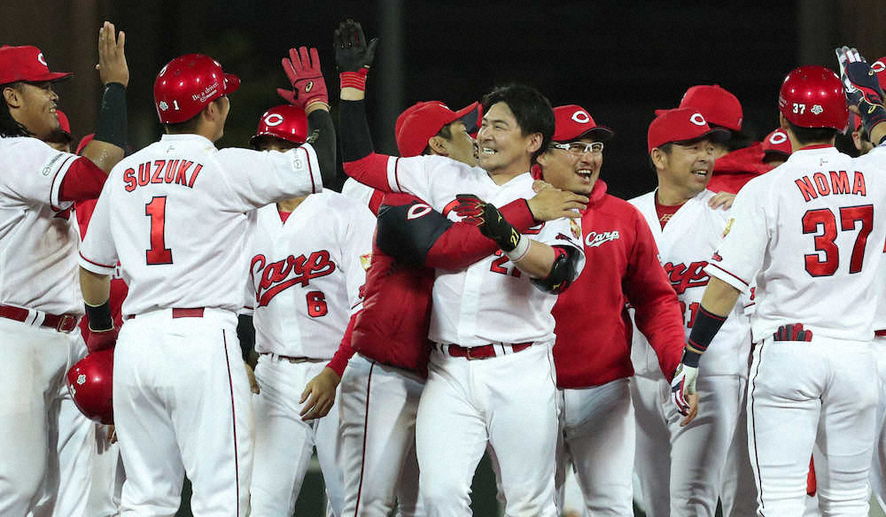 <広・D>延長10回裏1死満塁、会沢は中前にサヨナラ打を放ちベンチに向かって指さす(撮影・奥 調) Photo by スポニチ 広島 今季初の連勝!会沢のサヨナラ打で延長戦制す ギャラリーで見る この記事のフォト 2019年04月19日の画像一覧 もっと見る 2019年04月19日の画像をもっと見る