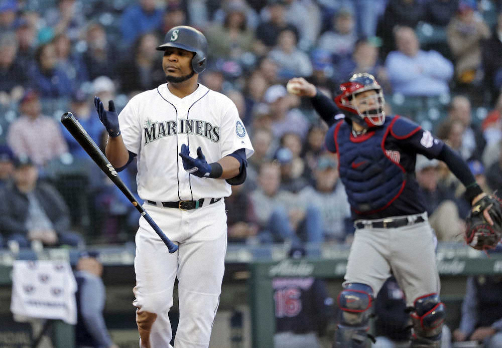 <マリナーズ・インディアンス>4回、三振に打ち取られたマリナーズの主砲、エンカーナシオン(AP)