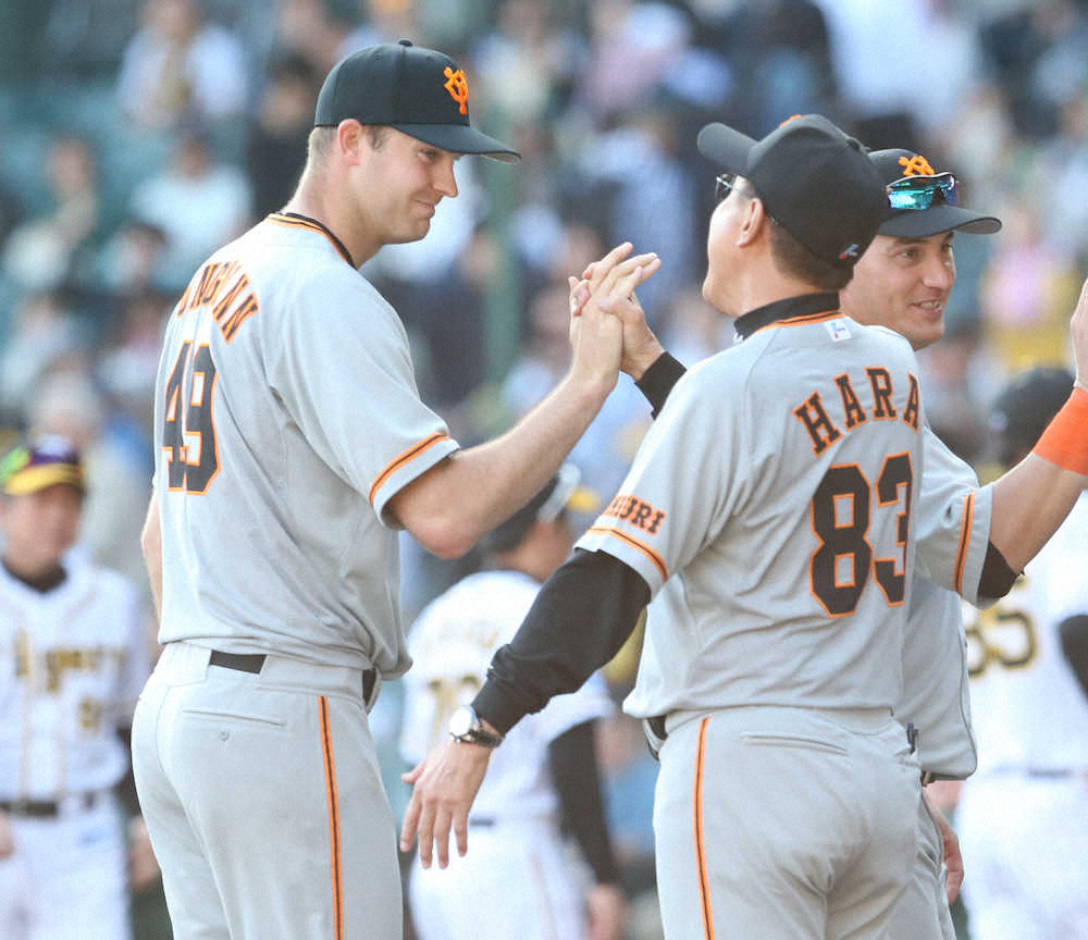 <神・巨>2回1死一塁、原監督(中央)は先制2ランの石川(左)とハイタッチ(撮影・岩崎 哲也) Photo by スポニチ 巨人・原監督「吉村コーチがぜひ使ってくれ、と…」先発抜てきの石川が決勝… ギャラリーで見る この記事のフォト 2019年04月20日の画像一覧 もっと見る 2019年04月20日の画像をもっと見る