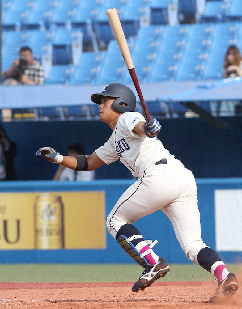 抜てきに応えた。「5番・DH」で初スタメンに名を連ねた国学院大2年生の山本ダンテ武蔵が3回に先制左越え3ラン。リーグ初安打が本塁打となり「打った瞬間手応えがあった。やっと(ヒットが)出た」と喜んだ。17年センバツ優勝の大阪桐蔭でレギュラー。体重を4キロ増の79キロにして振り負けない体をつくり、レベルアップにつなげた。さらなる成長に向けて「頼られる選手になりたい」と腕をぶしていた。