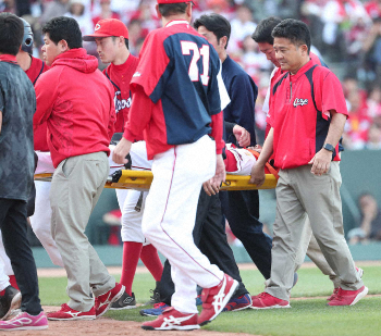 松原チーフトレーナーは、「頭なので、慎重にやります。プログラムにそって、最善の措置をする」と説明。病院から球場に戻った松山は、自力で歩行してタクシーに乗り込み、帰途についた。