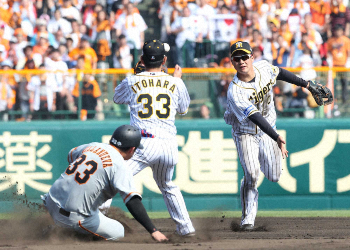 <神・巨>4回無死一塁、ビヤヌエバの走塁が守備妨害でないか真鍋球審(右)に確認する矢野監督(撮影・北條 貴史) Photo by スポニチ 併殺と思いきや…阪神 野選、悪送球、ボールデッドでまさかの“珍失点” ギャラリーで見る この記事のフォト 2019年04月21日の画像一覧 もっと見る 2019年04月21日の画像をもっと見る