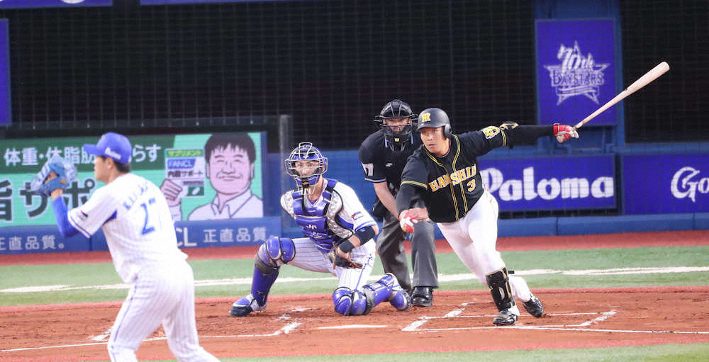 初回に訪れた1死二、三塁の好機。カウント2―2からの6球目に食らいついた。相手先発・上茶谷の外角へのカットボールにバットを伸ばし、中前にはじき返した。三塁走者・糸原を本塁へ迎え入れ、チームに19イニングぶりの得点をもたらした。自身4試合ぶりの打点を挙げたこの一打が、決勝打にもなった。さらに2死後、梅野の打席で今季初盗塁となる二盗も決め、新人右腕を揺さぶった。