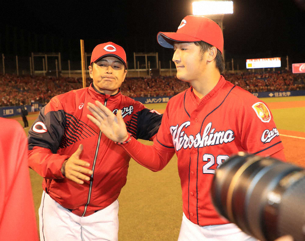 <ヤ・広>スタンドに向かってウイニングボールを掲げる床田(撮影・篠原岳夫) Photo by スポニチ 広島・床田 7回零封でリーグトップタイ4勝目 バント処理も完ぺき「キャ… ギャラリーで見る この記事のフォト 2019年04月27日の画像一覧 もっと見る 2019年04月27日の画像をもっと見る