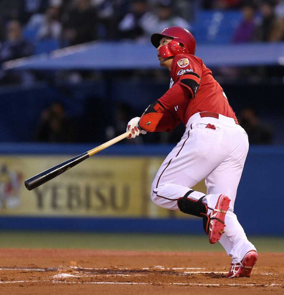 先発復帰の誠也、いきなり猛打賞 ヤクルト・高梨に無得点の広島打線で孤軍奮闘