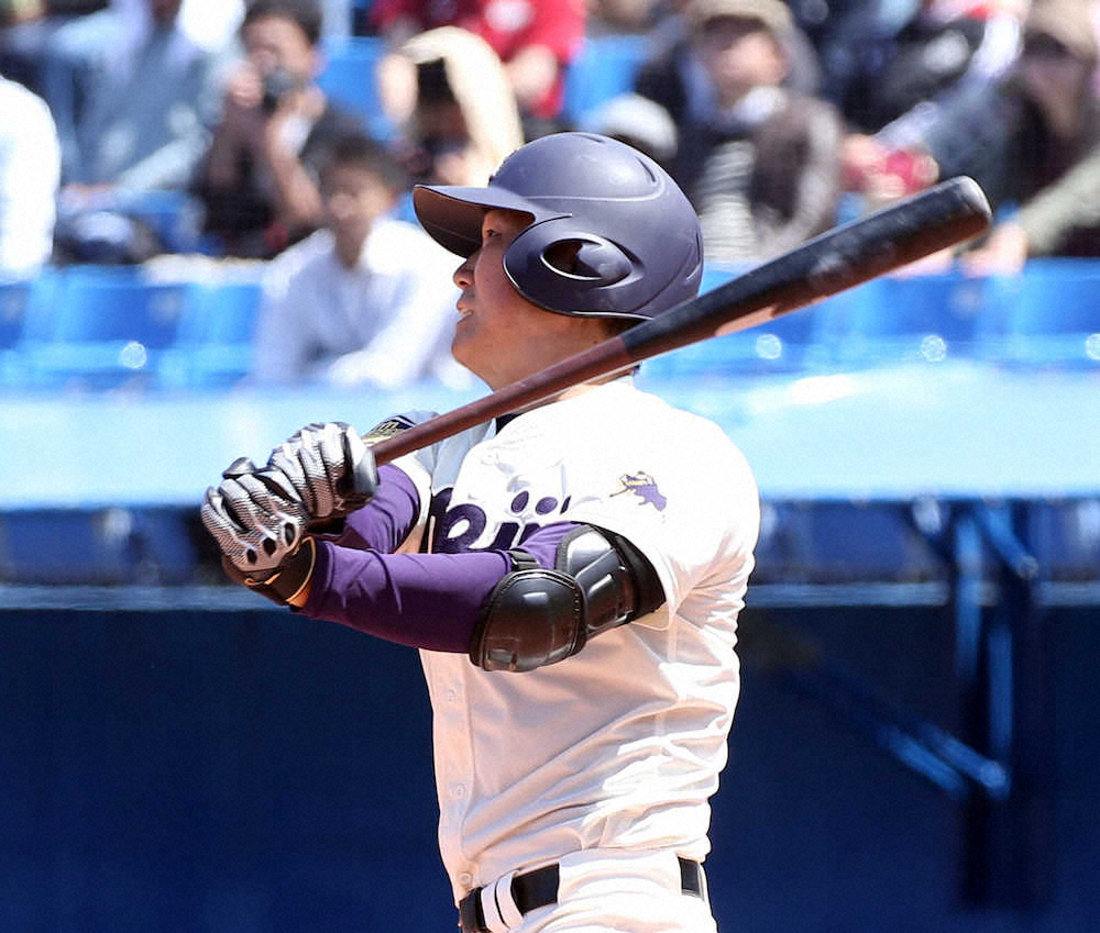 前日まで8打数無安打と精彩を欠いた。試合後、寮に戻って約3時間の特打を行って、力みすぎる悪癖を矯正。2年秋の新人戦、法大との決勝で放った特大弾の感触を思い出した。善波達也監督はスタメンから外すことも考えていたが、ベンチ裏でヒーローを呼び止め「今日は和田が一番」と称えた。これには和田も「意味のある一本が出て良かった」と笑った。(伊藤 幸男)