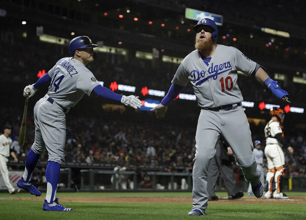 0―1で迎えた4回にデビッド・フリース(36)の2号3ランで逆転すると、6回にはエンリケ・ヘルナンデス(27)の6号2ランなどで一挙6点。7回には3番のジャスティン・ターナー(34)が今季29試合目にして待望の1号ソロを放ってジャイアンツを突き放した。