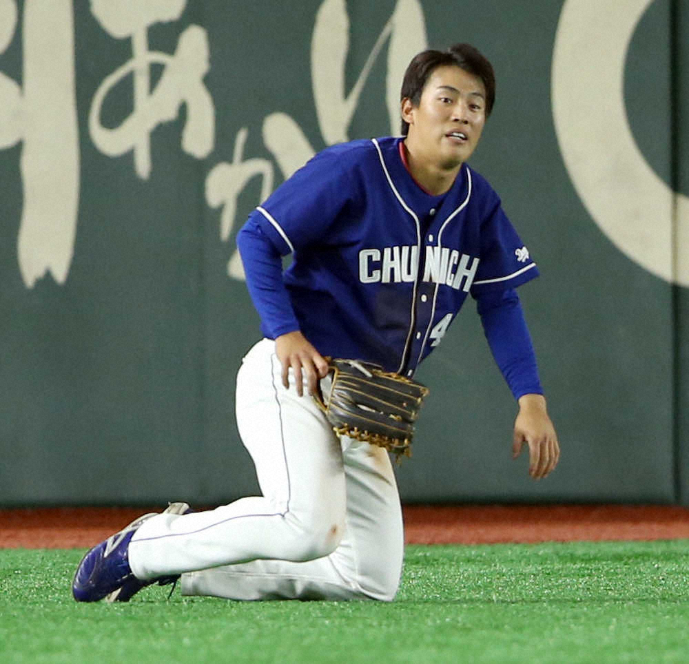 中日・伊藤康 プロ初スタメンでフェンス激突好守&初打席初安打「少しでも1軍の力になれたら」