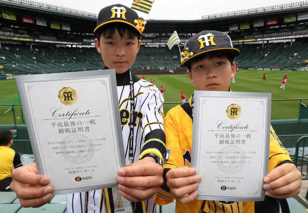 唯一のナイターで行われた4月30日の阪神―広島戦では、入場者全員に「平成最後の一戦」と記した観戦証明書がプレゼントされた。
