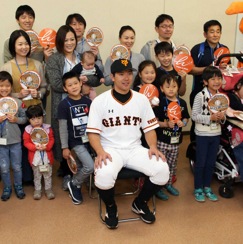4月28日のDeNA戦(東京ドーム)。試合前の炭谷はユニホーム姿で記念写真に収まっていた。15年から始めて来た「難病を患う子どもとその家族の支援活動」。この日は新たな本拠地に、子どもとその家族を招待。試合前には対面を果たした。