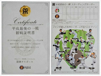 来場者全員に「観戦証明書」を配った。ファーストピッチ・セレモニーには2003年リーグ優勝時の最優秀選手(MVP)の井川慶氏(39)を招き、同年最優秀バッテリー賞(スポーツニッポン新聞社・電池工業会共催)を受けた矢野燿大監督(50)との名コンビを復活させた。