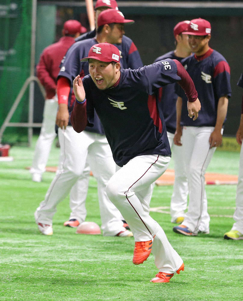 <ソ・楽>この日誕生日を迎えた西宮は元気良くアップする(撮影・岡田 丈靖)