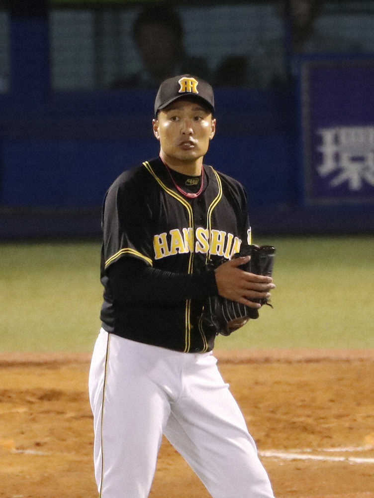 先発した阪神・秋山がなんとか試合を作った。