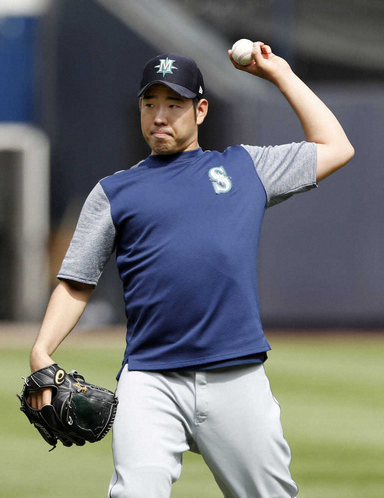マリナーズの菊池は8日(日本時間9日)のヤンキース戦先発に向け、ブルペンで38球を投げた。