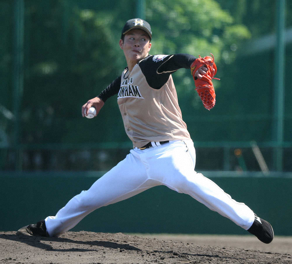 輝星、9回連続無失点 プロ入り最速149キロ計測 藤原からもK