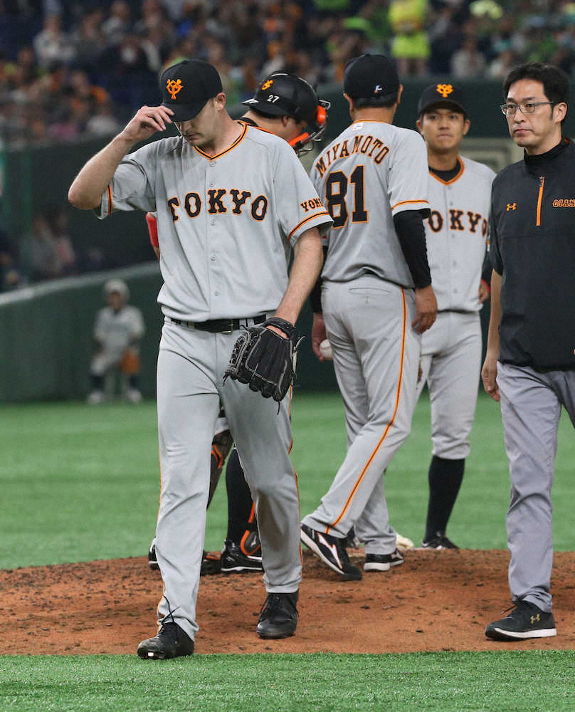 巨人・ヤングマンは2回に西浦に先制2ランを浴びると、4回に3連続四球から追加点を許して降板となった。