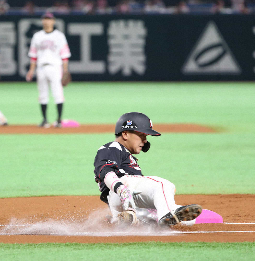 【画像・写真】ロッテ・田村が負傷交代 一塁スライディングで右足痛める