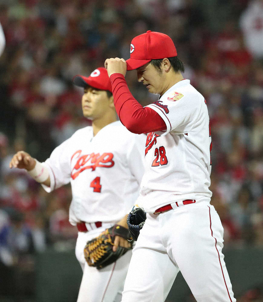 5回6失点で降板の床田(右)(撮影・奥 調)