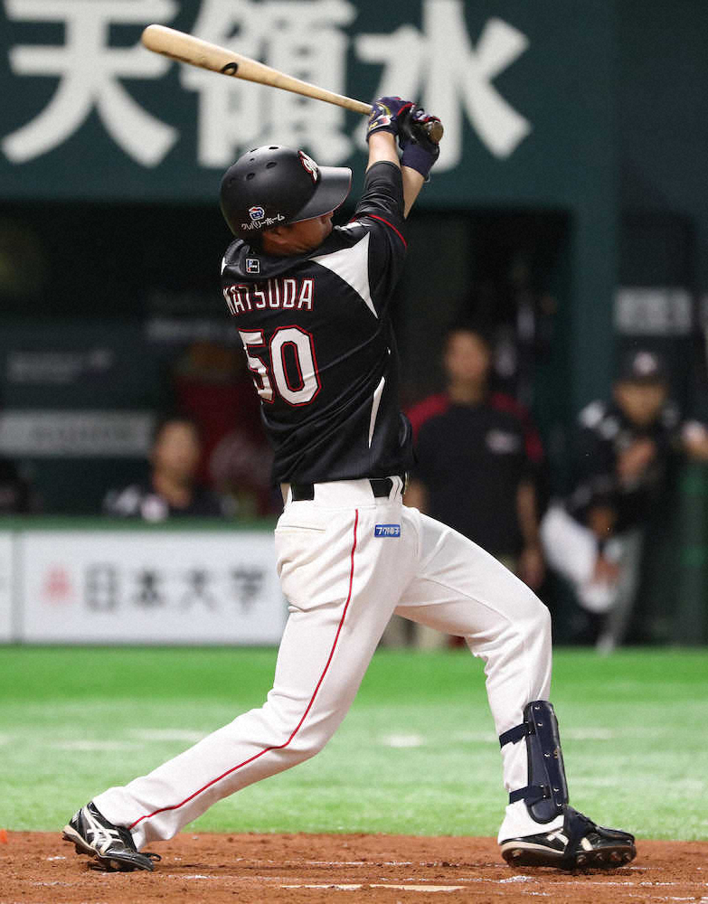 ロッテのドラフト7位ルーキー・松田(Honda)がプロ初スタメン起用され、3回無死の第1打席で左腕ミランダから中前へプロ初安打を放った。
