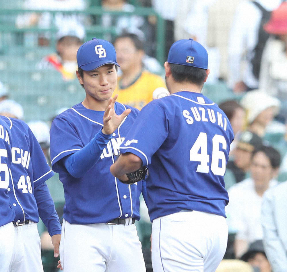 打線も初回、先頭・京田の中前打と2四球で1死満塁とし、絶好調の高橋が阪神の先発・才木から6試合連続打点、7試合連続安打となる適時二塁打で先制。追いつかれた2回には加藤が中前打で出塁すると、2死二塁の好機から大島が左中間へ勝ち越しの適時三塁打。5回にも2死二、三塁で阿部が2点タイムリー二塁打を放って加点した。