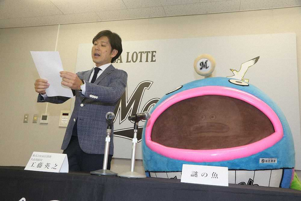 ロッテの球団公式キャラクター「謎の魚」の等身大ボブルヘッド人形が高齢者向け介護事業などを行う「株式会社七夢」に移籍することが決まった。謎の魚は昨年3月の競売で「株式会社拓匠開発」に800万円で落札されたが、13日付で契約解除に。新たな購入額は明かされていない。