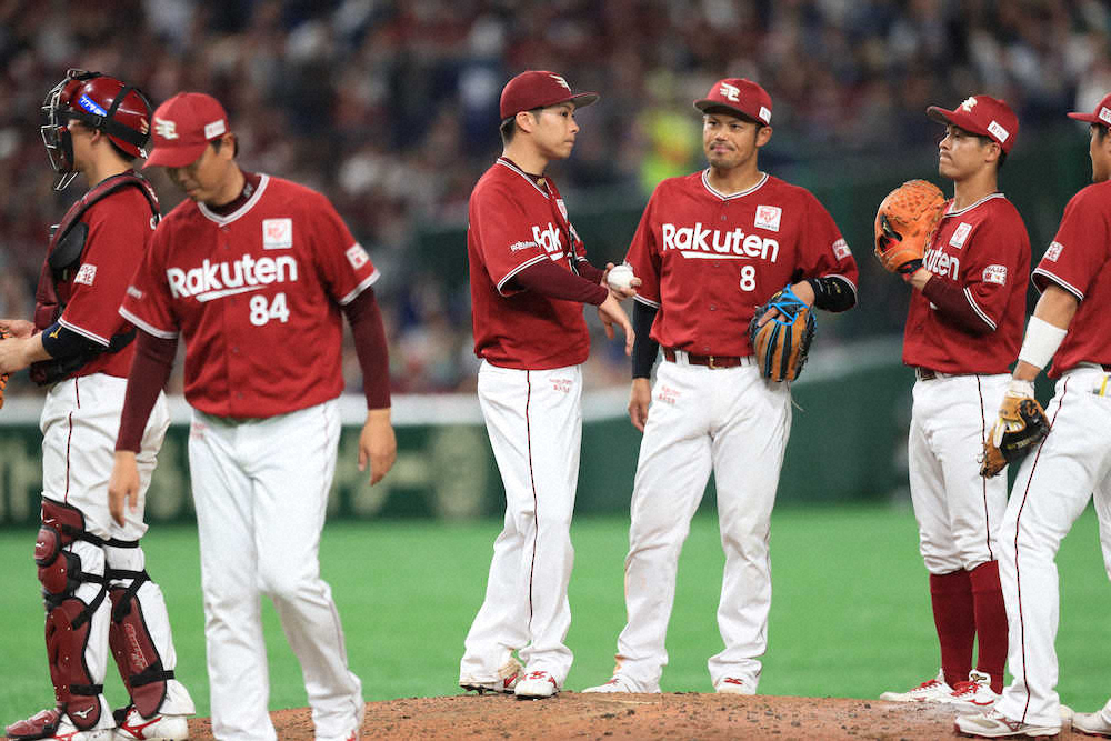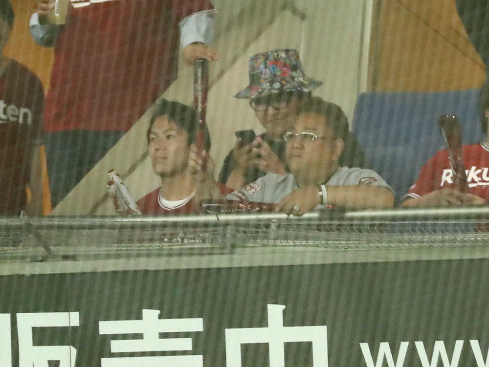 <楽・日>ベンチ前で話をする平石監督、三木谷オーナー、石井GM、立花球団社長(左から) =撮影・白鳥 佳樹= Photo by スポニチ 楽天 三木谷オーナー観戦も屈辱零敗…辛島好投も打線は今季ワースト2安打 ギャラリーで見る この記事のフォト 2019年05月16日の画像一覧 もっと見る 2019年05月16日の画像をもっと見る