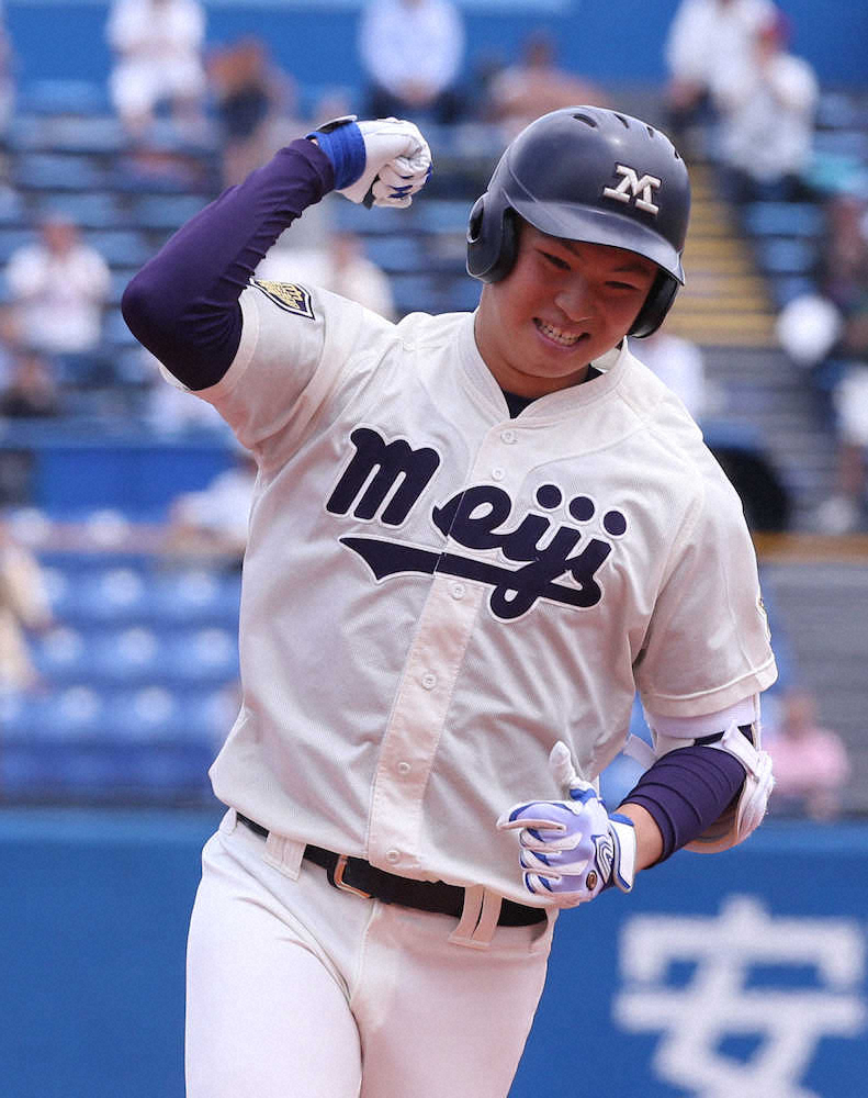 履正社在校時の1年夏、遊撃手で出場した練習試合で放って以来の本塁打。2年以降はエースとして安田尚憲内野手(ロッテ)らと17年センバツ準優勝に貢献したが、元来打撃は好きだった。「大学でも打者と一緒の練習に入れてもらってます。自分が打てば楽になるじゃないですか」。高校通算本塁打は2ケタ以下だが、満塁弾も経験するなど勝負強さはピカイチ。今春リーグ戦も5打数3安打の打率・600だ。