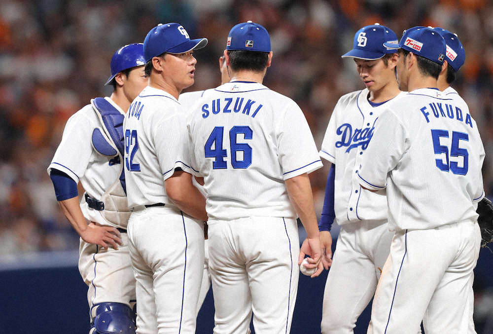 勝利を渇望する中日・与田監督の足が自然と動いた。2点リードの9回、鈴木博が代打大城に一発を浴び、さらに1死一、三塁のピンチを招くと、就任後、初めてマウンドへ行き守護神を激励。「みんな後ろで守っている。やられるか抑えるか二つに一つ。思い切ってやって来い」。応えるように鈴木博は開き直った初球で岡本を二ゴロ併殺に仕留め、連敗を2で止めた。