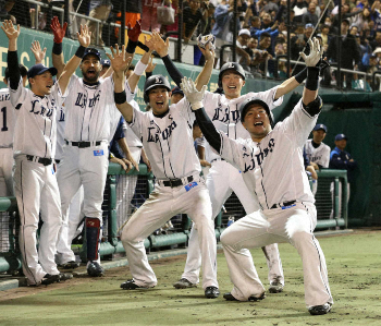 9回表1死、勝ち越しの適時打を放ち一塁コーチと笑顔でタッチを交わす角中(撮影・後藤 正志) Photo by スポニチ 2019年05月22日の画像一覧 もっと見る 2019年05月22日の画像をもっと見る