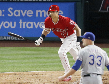 エンゼルス大谷翔平投手(24)が24日(日本時間25日)、本拠地アナハイムでのレンジャーズ戦に「3番・DH」でスタメン出場。初回の第1打席で四球を選び、メジャー自己最長の10試合連続出塁を記録したが、快音は聞かれず3打数無安打だった。チームは守備の乱れから失点するなど逆転負け。これで5連敗となった。