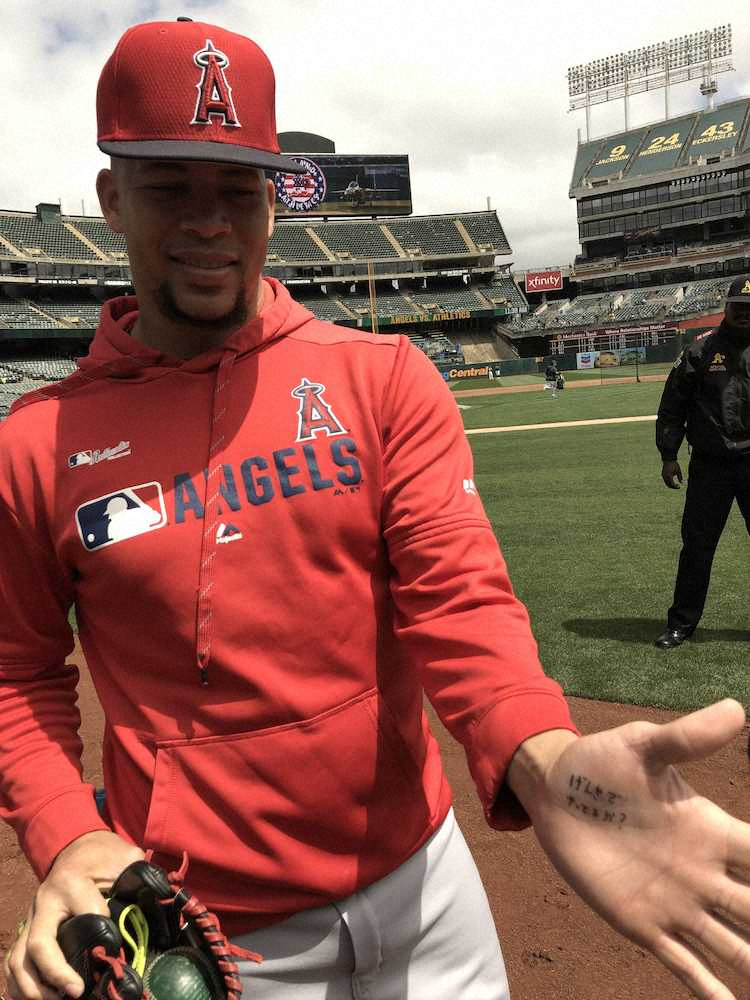 また、守護神のロブレスが「げんきでやっているか?」と日本後で書かれた左の手の平を報道陣に披露。「大谷に書いてもらった!」とうれしそうに話していた。