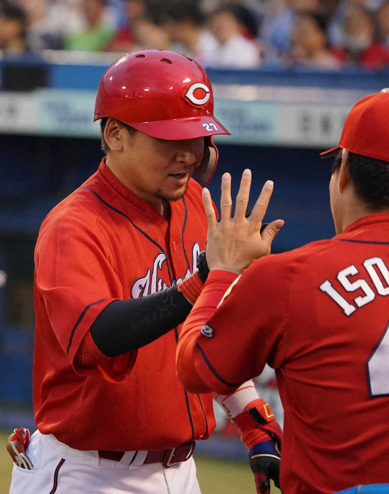 広島の会沢翼捕手(31)がヤクルト戦(神宮)の2回に同点となる5号ソロを放った。