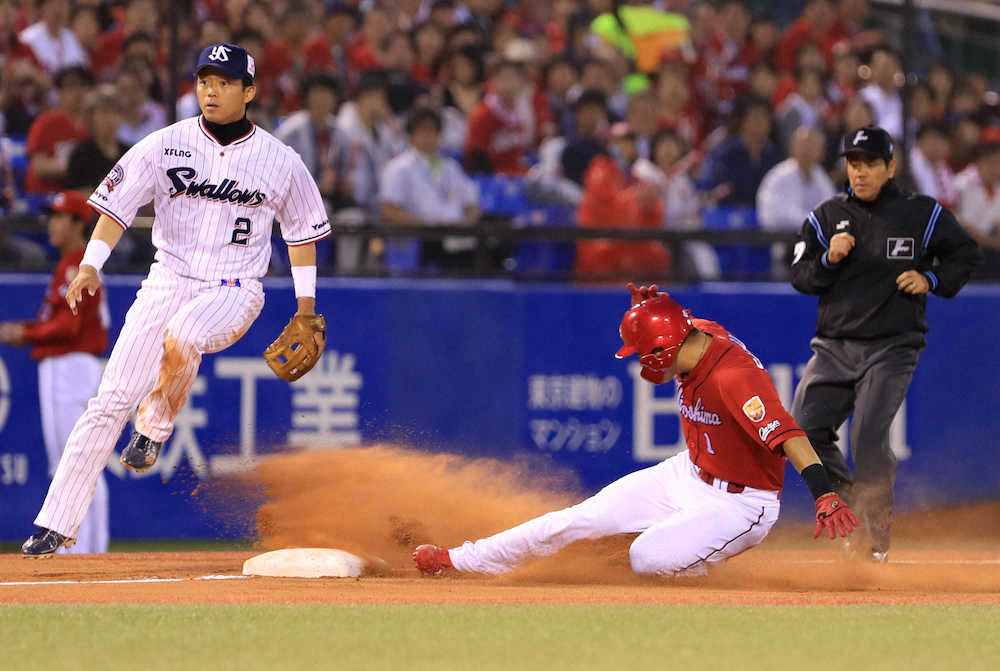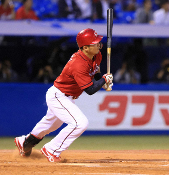 先頭・野間が左前打を放ち、バレンティンがファンブルする間に二塁へ。続く菊池涼のセーフティーバントなどで1死一、三塁としてから主砲・鈴木が中前へ適時打を放って勝ち越すと、続く西川も二塁への内野安打を放って1点追加。さらに鈴木が三盗を決めて2死一、三塁としてから田中広に右翼線二塁打が出てこの回3点目が入った。