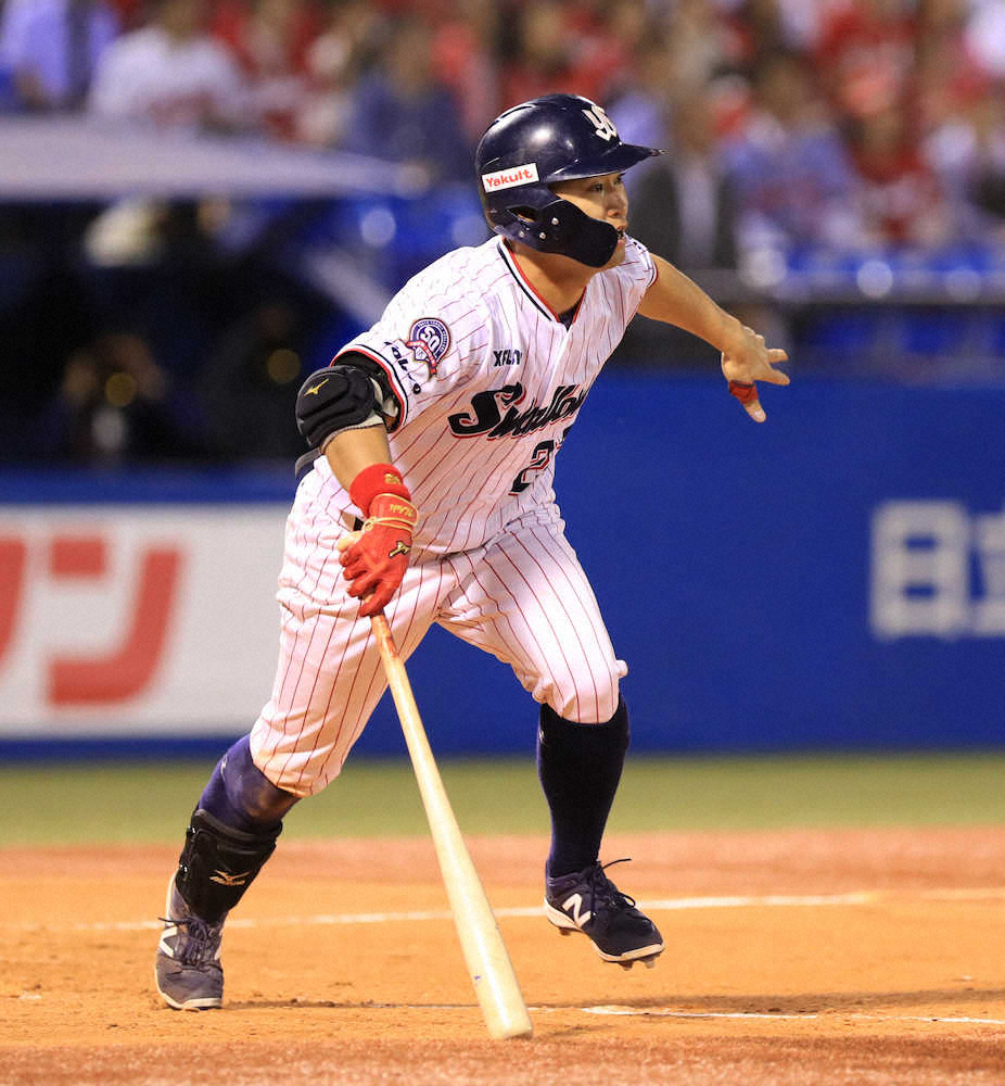 1―7で迎えた4回、ヤクルトは山田哲の3戦連発となる12号、村上の2ランなどで反撃を開始。広島先発・野村を3回1/3でKOすると、マウンドが2番手・九里に代わった2死満塁から青木が右前へ2点タイムリーを放ち、6―7と1点差まで追い上げた。