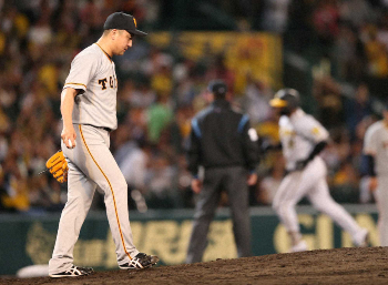 その後4番手の中川が9、10回を無失点に抑えるも延長11回、5番手の田原が無死満塁のピンチを作ってしまい降板。ここで6番手の高木が奮起。近本を中飛、鳥谷を空三振、糸井を中飛と見事に打ち取って無失点に抑えた。しかし延長12回、1死満塁から8番手の池田が高山に1号サヨナラ本塁打を浴び力尽きた。